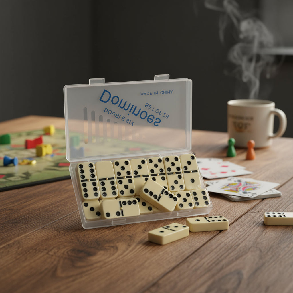 Disfruta de momentos inolvidables con el clásico juego de dominó. Este set incluye 28 piezas grandes de dominó fabricadas en un resistente estuche plástico, ideal para facilitar su transporte y almacenamiento. Su diseño en tamaño grande (17 x 10 cm) ofrece una experiencia de juego cómoda, asegurando que cada ficha sea fácilmente visible y manejable.