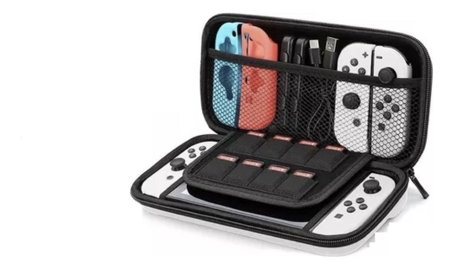 Con capacidad para 12 compartimentos, este estuche permite organizar tus juegos y accesorios de manera eficiente. Además, es resistente al agua y al polvo, lo que garantiza que tu consola se mantenga en perfectas condiciones, sin importar el entorno. Su diseño funcional y elegante lo convierte en un accesorio imprescindible para cualquier amante de los videojuegos.