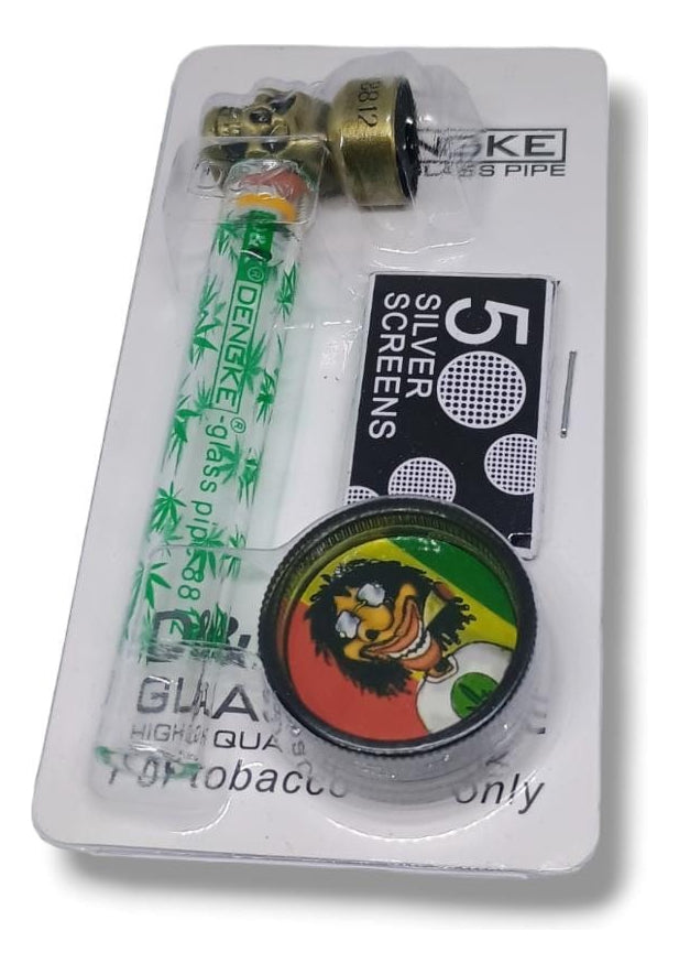 Pipa Vidrio 9 Cm + 5 Rejilla + Moledor Plastico