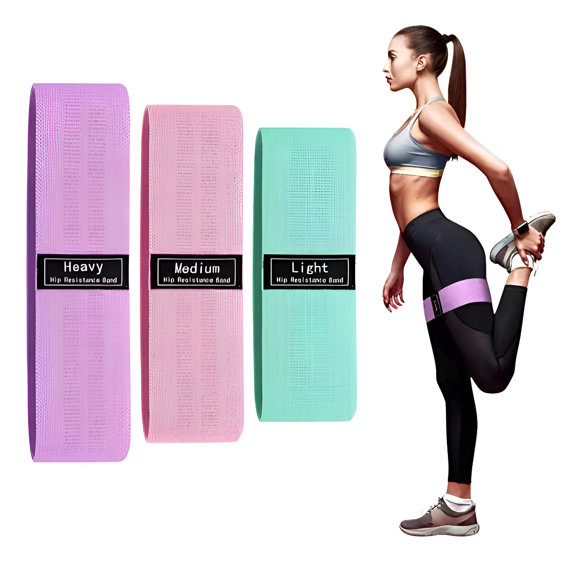 (Adecuado para todo tipo de deportes) ¡Adecuado para mujeres/hombres! Puedes hacer muchos ejercicios con estos cinturones de ejercicio, Pilates, sentadillas, puentes de cadera y pulmones, patadas de burro, caminatas monstruosas, etc. Estos cinturones ejercitan tus caderas. muslos, piernas, abdomen y crea la curva perfecta de la cadera.