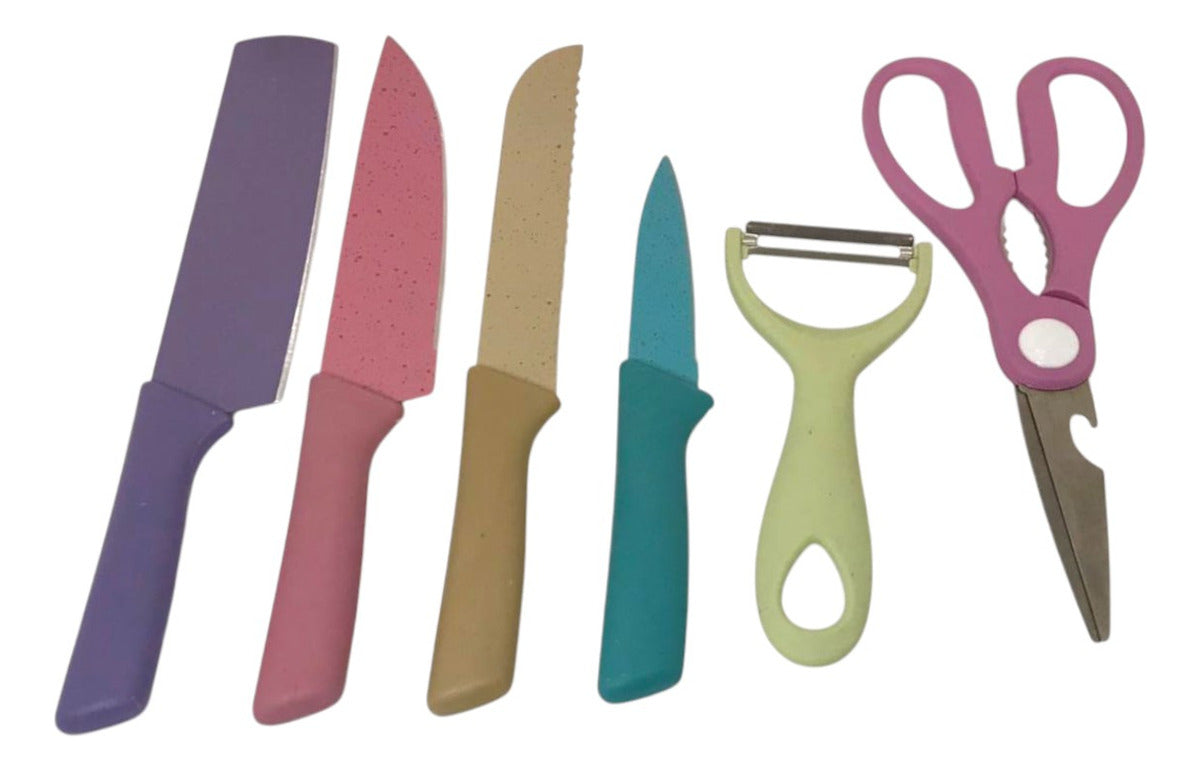 Set De Cuchillos Juego X6 Piezas Colores Pastel Cocina