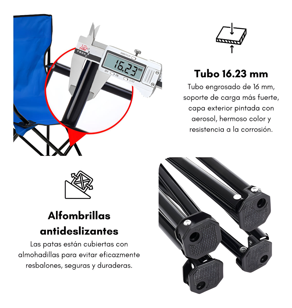 Esta silla de camping plegable, con apoya brazo, te brinda comodidad, especialmente si disfrutas de salidas al aire libre con la familia y amigos. Muy útil para la playa o de camping.
